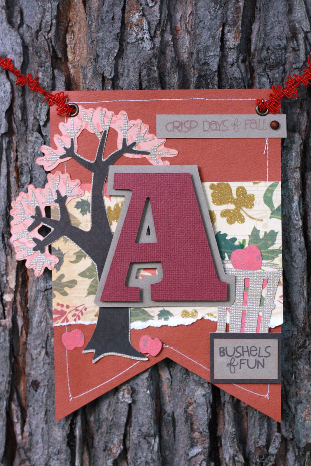 I created the A banner. I used the tree from the Fall Harvest SVG Kit. and the bushel basket is from Harvest Hill Farm SVG Collection.